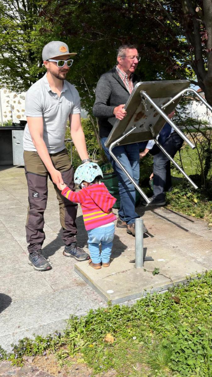 - Schrauben und Scharniere an allen Tischen und Stühlen (innen und außen) kontrollieren und nachziehen